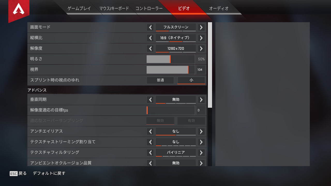 返信ありがとうございます。ビデオ設定画面のスクショです。解像度が1280x720となっているのはvideoconfigから直接解像度を設定しているからだと思います。