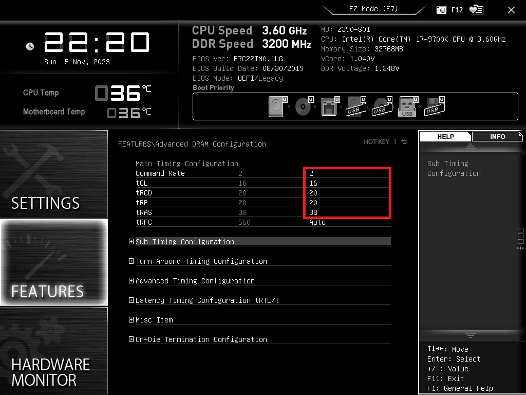 BIOSのメモリ設定(詳細:メインタイミング)
