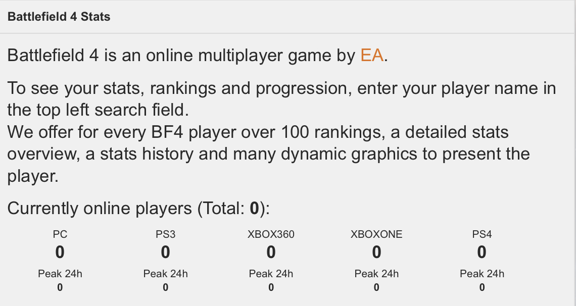 悪いけど、BF1もBF4もかなり過疎ってるよ。BF4に関してはstatusすらも機能してない。