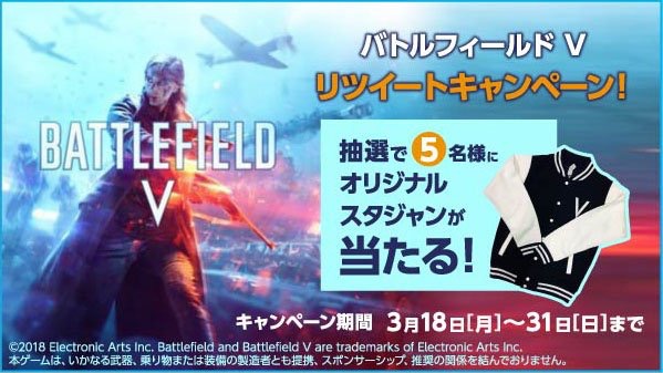 GEOのBFVリツイートキャンペーンでこんなのやってた。…以外とこのオリジナルスタジャン欲しい。