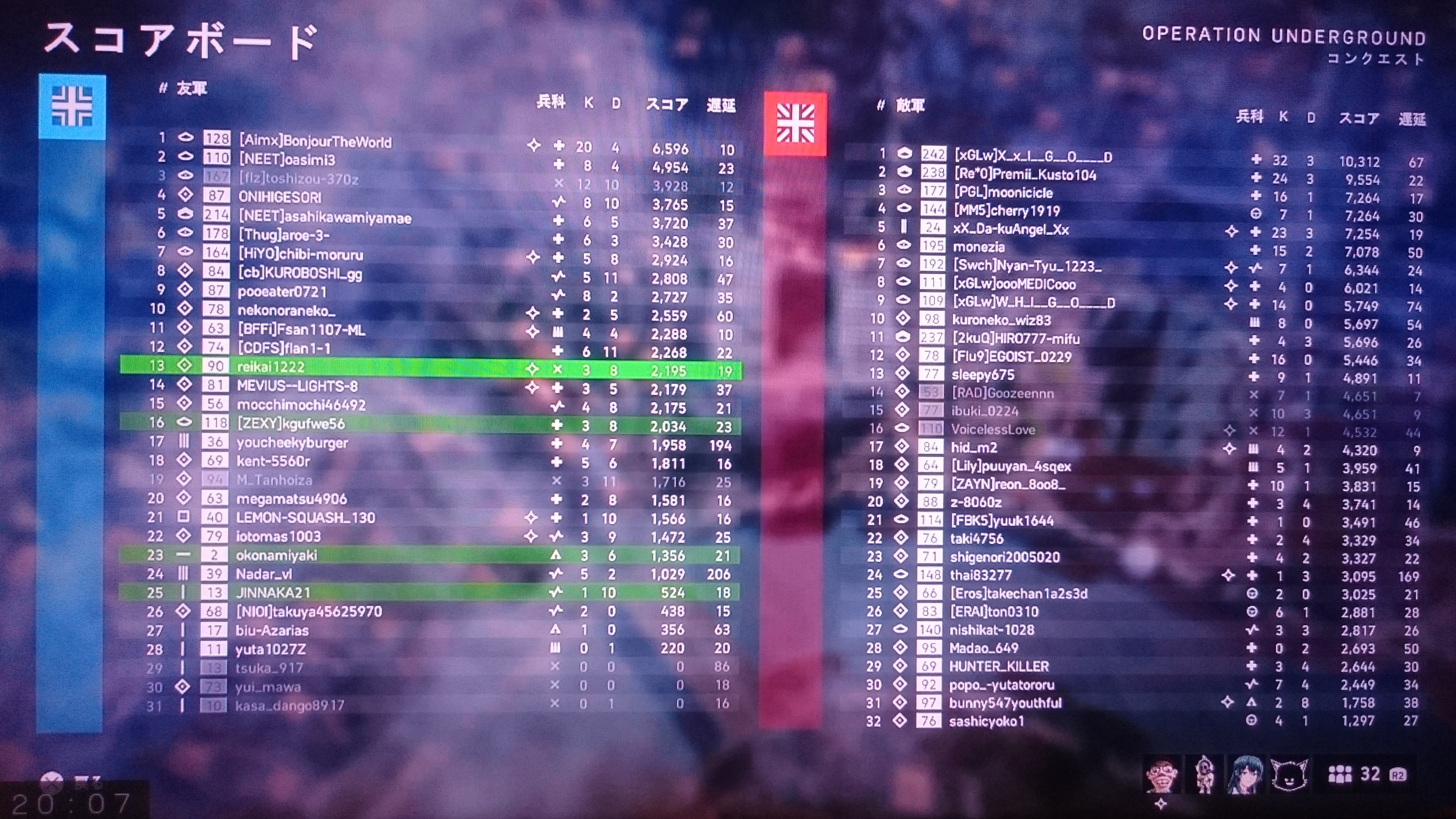この敵みたいに複数のクランが固まってイキるの本当に迷惑だからやめてほしい。これで一方的試合になってるし、一気に抜けるから鯖も妨害するし。迷惑です。