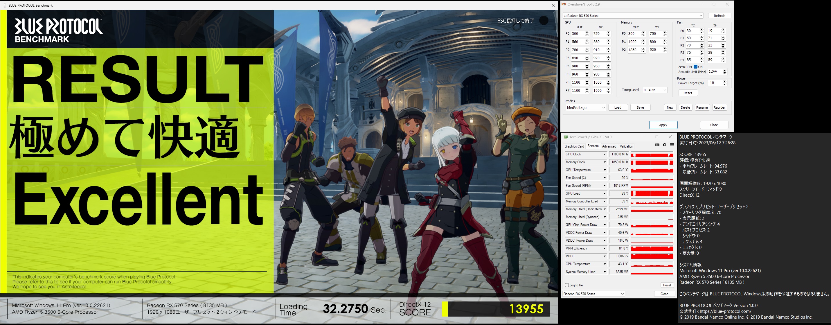 Radeon RX570 (1100/1850MHz)、1920x1080 「カスタム」 (70-2-4-2-0-4-0-0)、 スコア13955 (94.976fps)