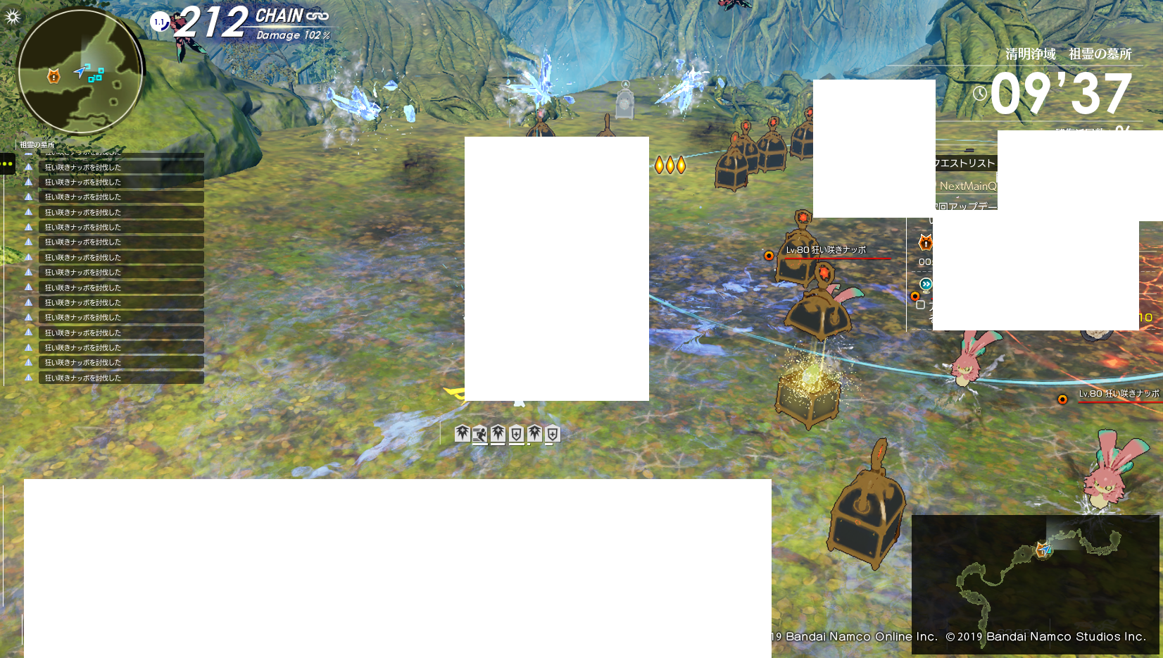 ラッシュの場所のSS撮れた。広場入る前の柱越えると開始っぽい。ネカフェの人がいたんか知らんが宝箱48個出てわろた