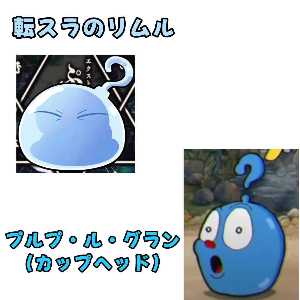 プルプルグラン、第二形態になる時に一瞬だけ頭の部分が「?」に変化するけど これ「転生したらスライムだった件」に登場するリムルじゃん!!! 両方ともスライムで 頭の部分が「?」になる どっちも共通してる!!!