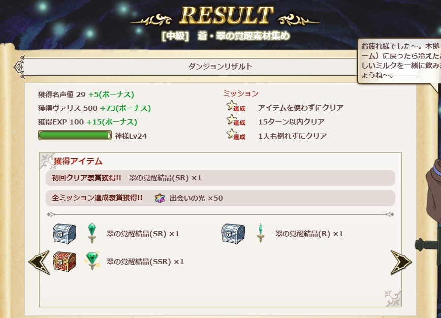 蒼・翠の覚醒素材集めで翠の覚醒結晶(SSR)が1個だけドロップした。