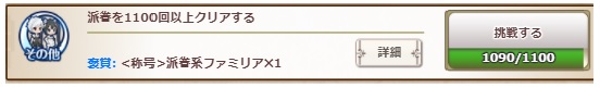派遣1100回で派遣系ファミリアの称号取得でした。1110回からまたAPハーブ(50)×3に戻ります。