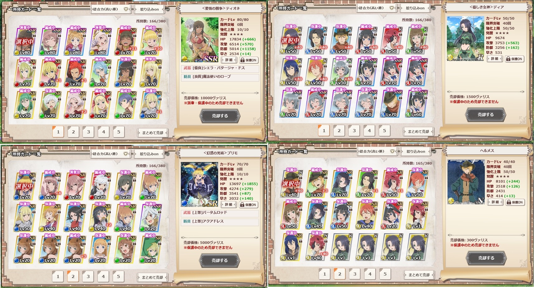 木主だけど手持ちのキャラの育成状態はこんな感じです。アシストはだいたい終わってるけど冒険者の方はまだまだ強化しなくちゃならないですね(特に青が全く足りてないorz)。まあ急いで育成しなくちゃいけない状況でもないので自分もこれからはスローライフになる予定です。