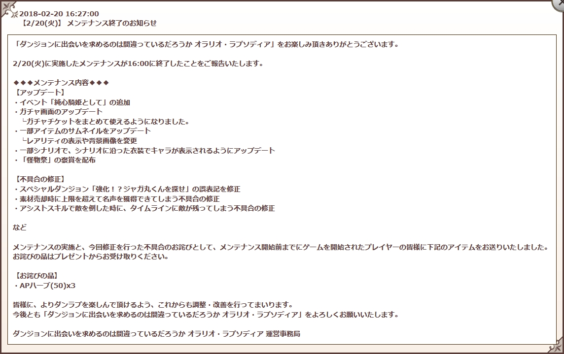 情報ありがとう、お知らせをあさってたら見つけた。2月20日にガチャのアップデートがあったみたい。