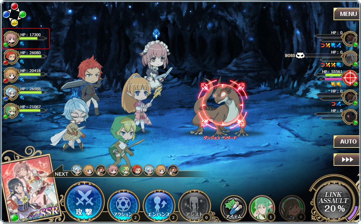 ちょっと実験してみたんですが、リーダーのときとそうじゃないときで被ダメージが倍違いますねw これはPRO1でHP満タン状態からリザードの全体攻撃を食らった状態です。このときリーダーのエマはHPを23511から17300まで減らしています。