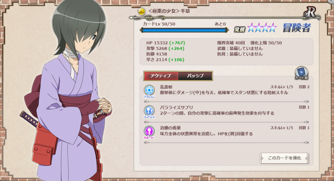 黄R千草のカンストキャラを作ってみた(スキル中ダメ)。