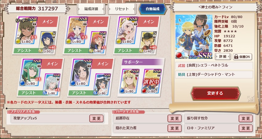 誰か、ワンターンキルを試せませんか?編成はSSRリヴェリア、SSRレフィーヤ、SSRプリモ、SSR命、最後にもう1人リンクゲージを上げるスキルかバフスキル持ち。サポートはひな祭りアイズ、バレンタインフィンあたりで。開始でサポートによるリンクゲージアップとSSR命のスキルによりリンクアサルト発動。あとは全体魔法で殲滅。誰か試せる方がいたら結果を教えて下さい。