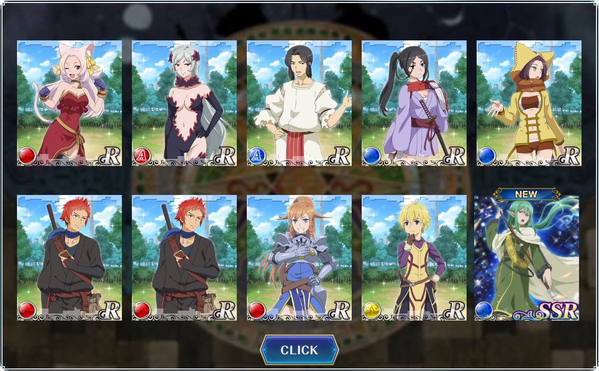 SR以上1枚確定でSSR1枚とR9枚。まあ、運はいいと思うけど、SRも出て欲しかったな・・・