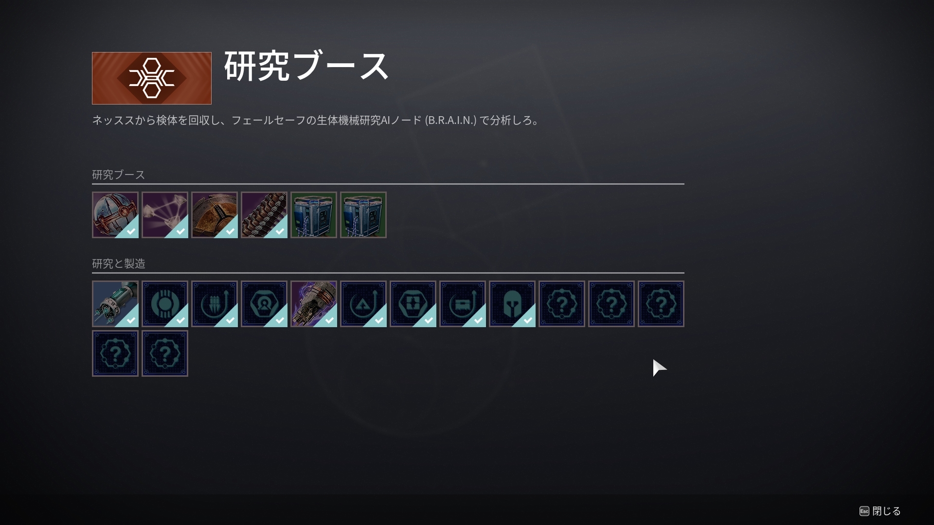 うーんクエストは8/28で止まっている状態なのであとは研究ブースだけだと思うのですがもしかしてここですかね?