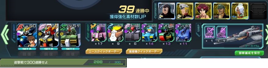 枝付け移動いたしました。上の方ではないけど、Bゼロ・コマンド・武者νでこんな感じに勝ててる。早送りしてて通信切れたりして連勝途切れたけど昨日まで200連勝以上してた編成