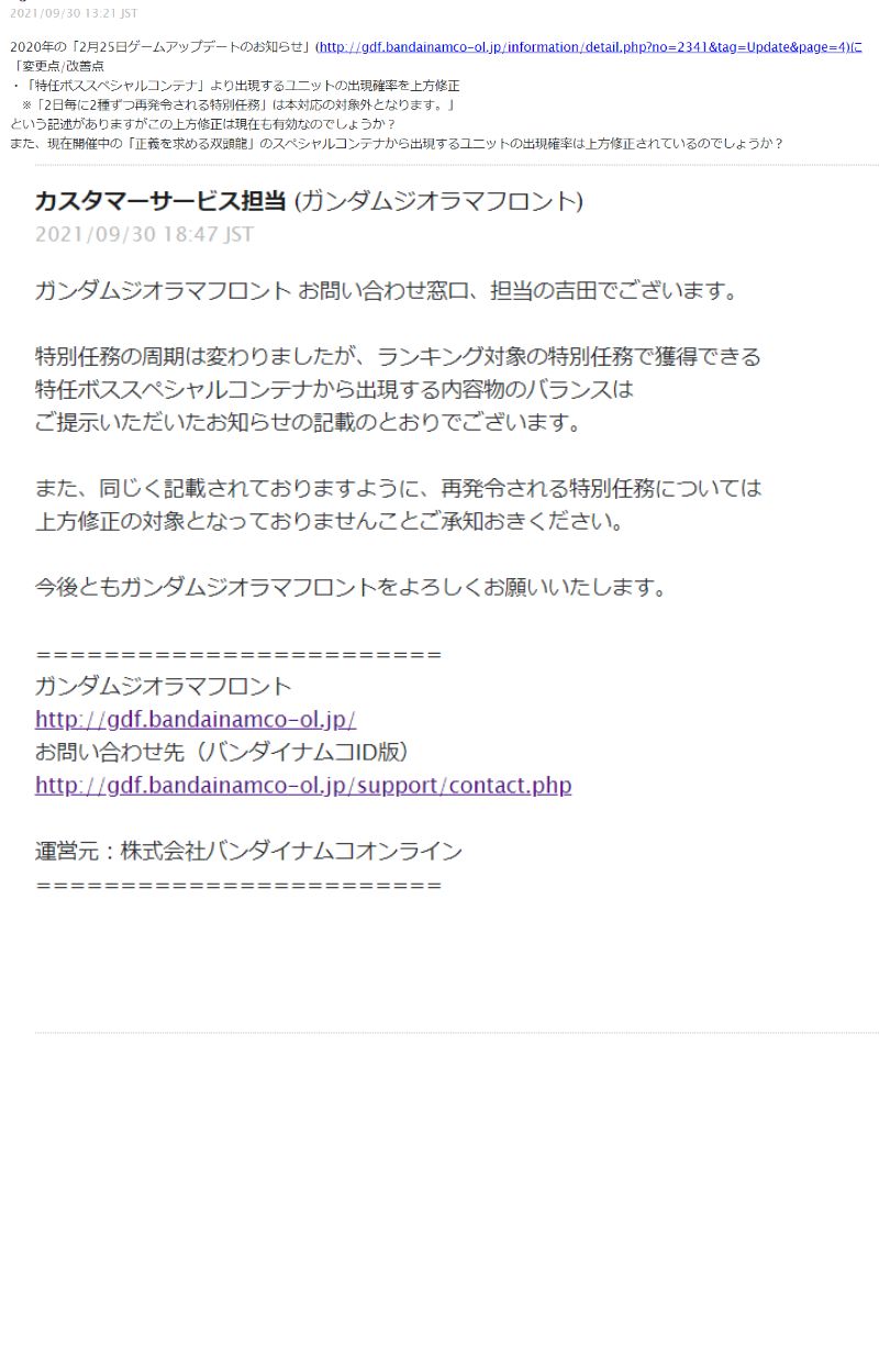 特任スペシャルコンテナから出現するユニットの確率に関する運営からの回答(1)