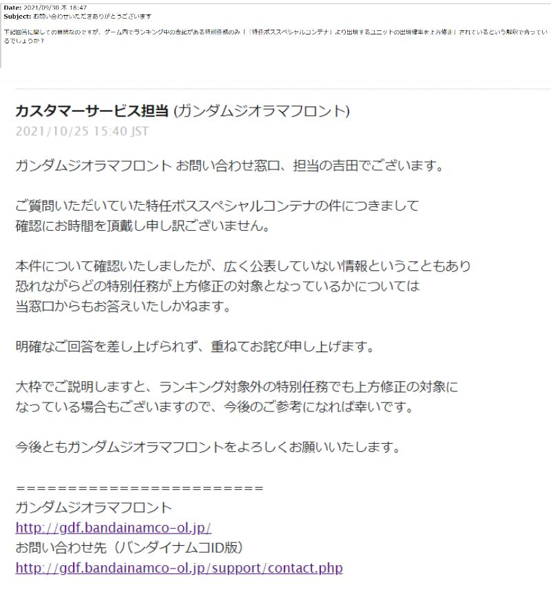 特任スペシャルコンテナから出現するユニットの確率に関する運営からの回答(2)