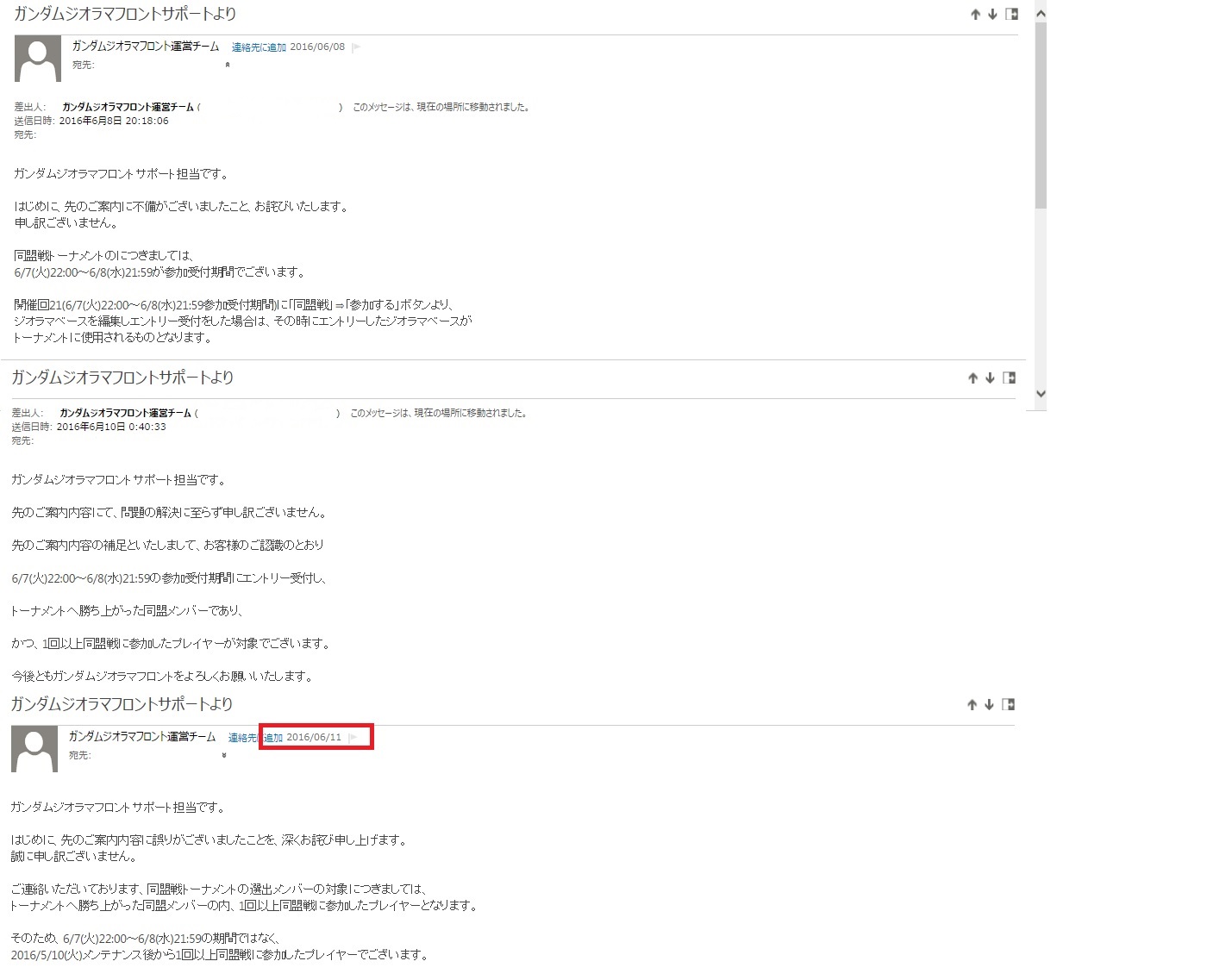 サポートに正しい情報が降りてきていないって会社として良くないでしょ。また一つガンジオの運営は客の信用を無くした気がする。