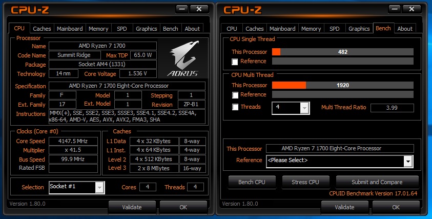 Ryzen3@4.15GHz 4C4T(Ryzen7でコア制限を掛けました)