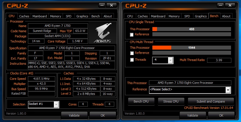 こんどは4.2GHzで挑戦。8C8Tでのガンオン限界は4.15GHzだが4C4Tならいけるのか?