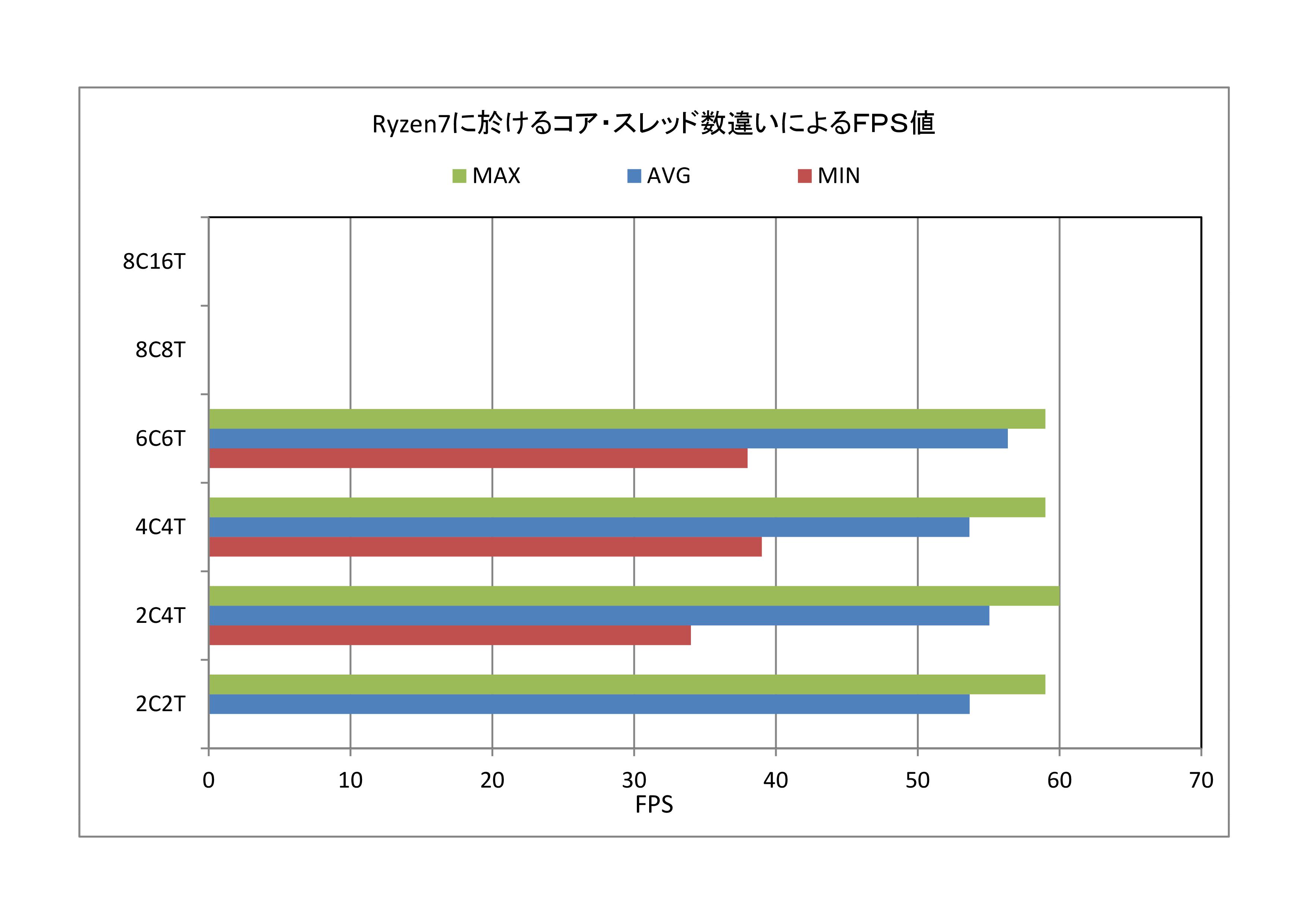 最低値で見ると、4C4Tの物理コアが有利そうです。