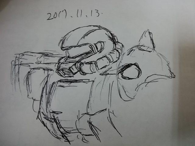 仕事中に記憶だけを頼りに3分ほどでちょっと書いてみたけど。昔はもうちょっとうまくかけたよな…。