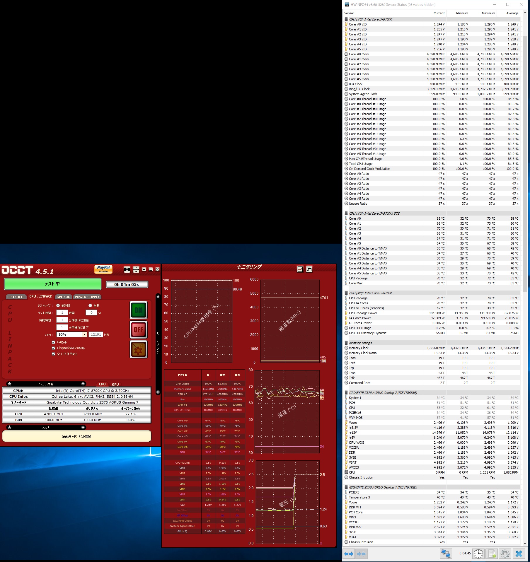拾い物だけど、8700K@4.7GHzて70℃以下みたいだね