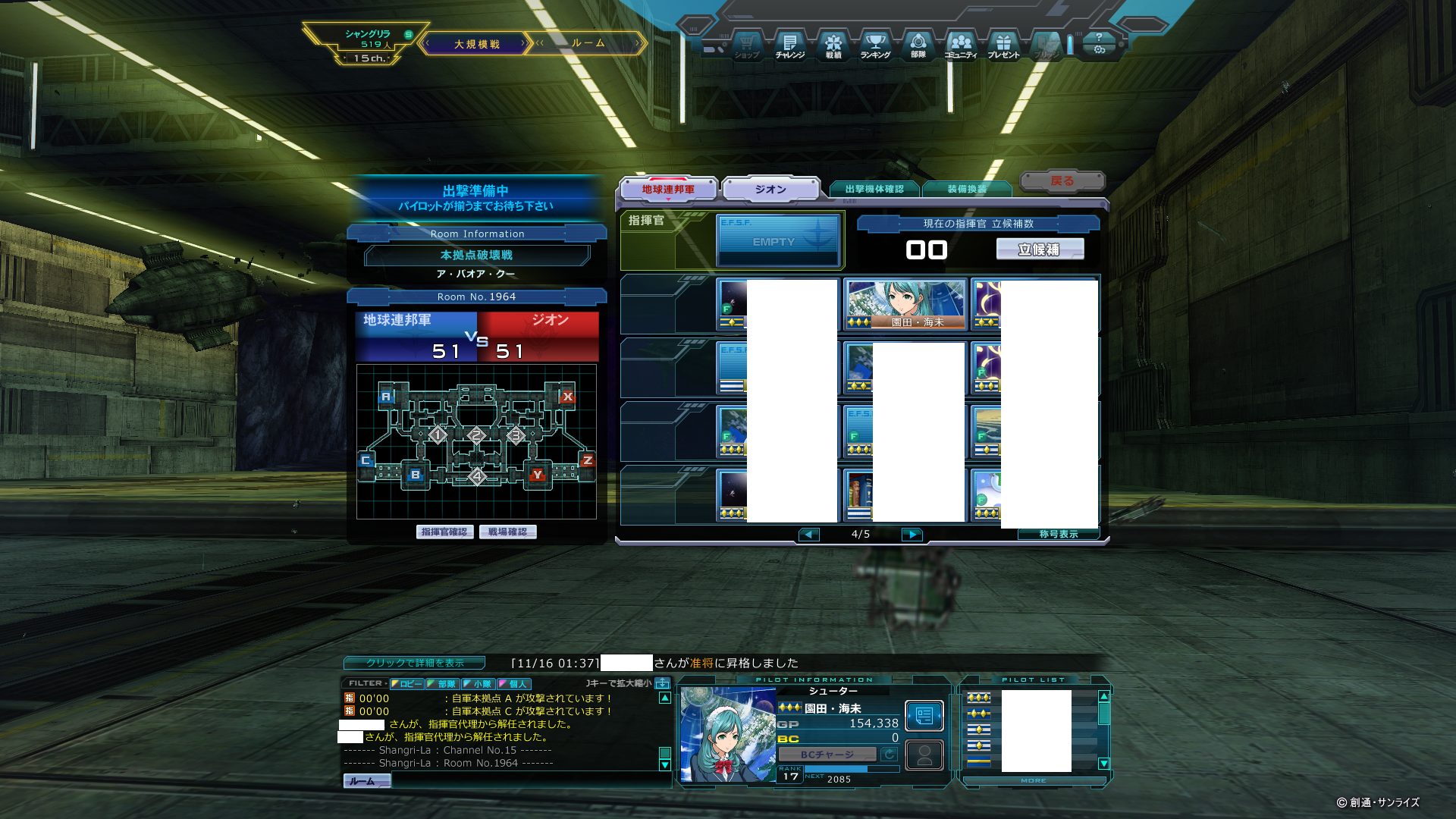 先ほどのマッチングです。小隊は組んでいません。連邦は大将多めですが佐官もちらほら混じっていました。尉官は私だけでした、ジオンは尉官佐官多数で轢き殺しで終わりました。大尉から大将までで間違いないと思います