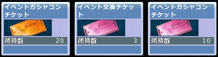 チャレンジボーナスの方で10枚がイベントガシャコンチケット(ピンク)で、交換にもガシャコンにも使えないな。緊急メンテでピンクをオレンジにするだけでよさそうだけど…メンテこないね?