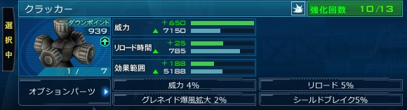 グフカス クラッカー 威力4% リロード5% グレネイド爆風拡大2% シールドブレイク5%