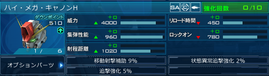 効果自体は既出ですが一応報告、FA-ZZのハイ・メガ・キャノンHに「移動射撃補助9%」「状態異常追撃強化2%」「追撃強化5%」付きました