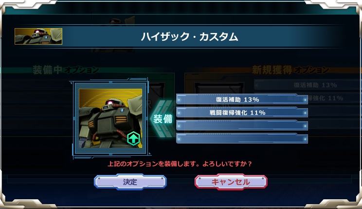 ハイザック 「復活補助 13%」「戦闘復帰強化 11%」を確認です。
