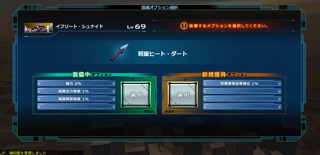 アドバンスドオプション、同じ武器に2回目ついたわけだけれども。これ、なんと空き枠が埋まるわけじゃなくてどっちか選択した方の一つしか選べない。