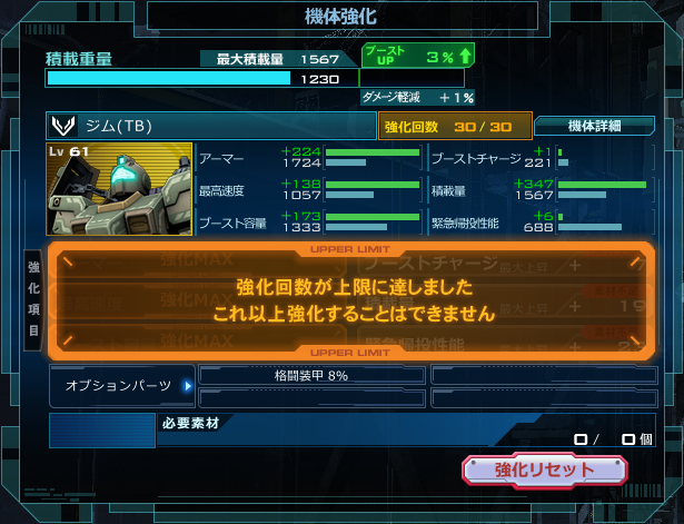 うわ。。。。うらやましいコレめっちゃ当たりだ 素の格闘が73%カットて・・・・モジュ乗っけたらすぐ上限いくし地上でも格闘に強くなれる