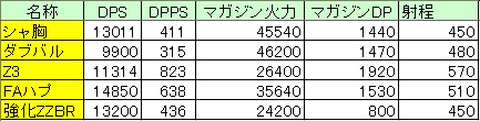 胸バルの説明用に近い性能の武器探していたんだが中々適当なのが無いな。斉射系はDPPSが違いすぎて論外だし、数値だけなら強ZZのBRが近いがあれは弾速が違いすぎるし。やっぱダブバルのDPSを1.3倍にしたもの当たりかね?