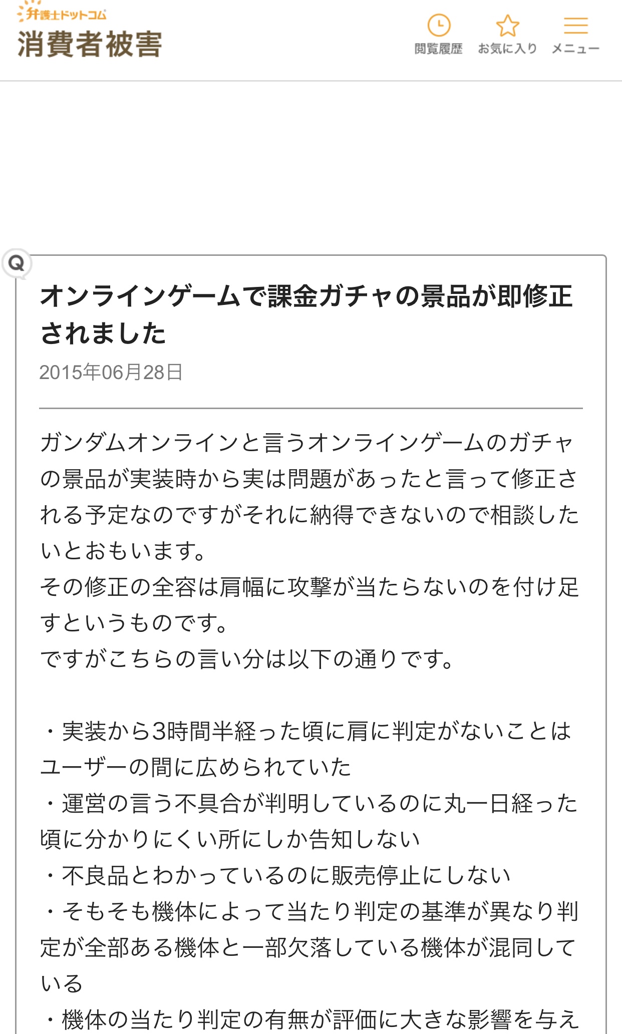 別ゲーの新ガチャで不具合あるのに告知せずガチャ期間終了してすぐに不具合告知からの修正を見て文句言えないか探してたら出てきた。ガンオン怖い。この頃やってなかったんだが何の機体だろ