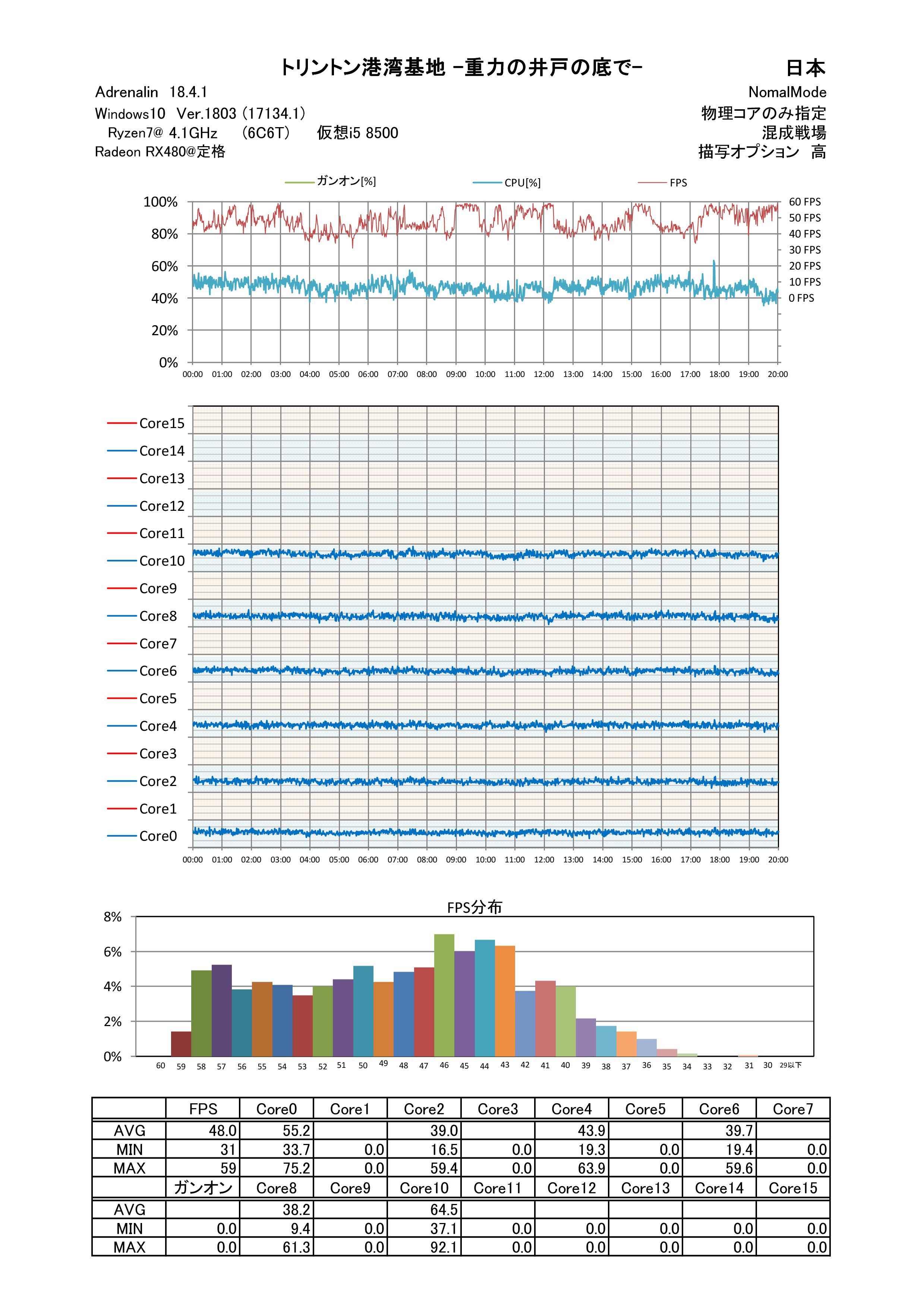 Ryzen7の有効コア数、シングルスレッド性能をi5-8500相当へ設定しデータを取ってみました。