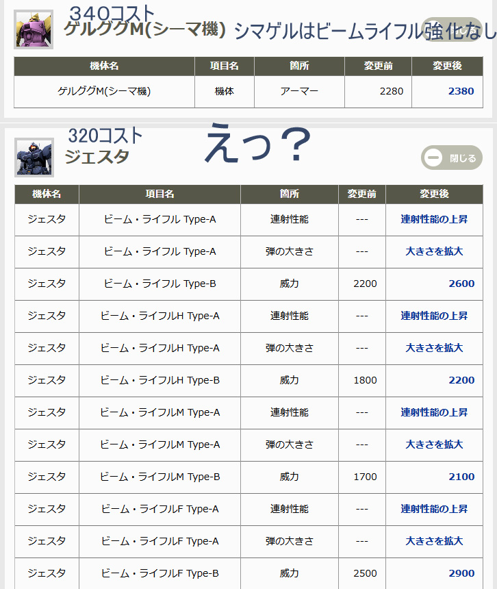 なんで連邦のジェスタだけ武器の性能上がって、340のこいつは武器の性能上がらねえんだよ。まじ連邦せこすぎる。コスト高いんだから性能上げろよバカ運営