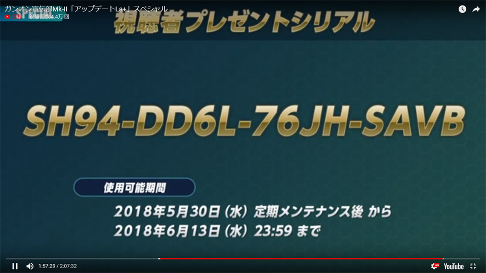 シリアルコード5月30日~6月13日(10万GP、マスターメカニックチケット2枚、DXガシャコンチケット1枚)