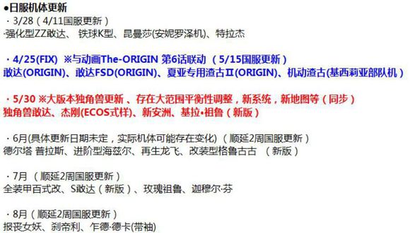 今後のアプデ情報中華のだけど良かったら参考にどうぞ