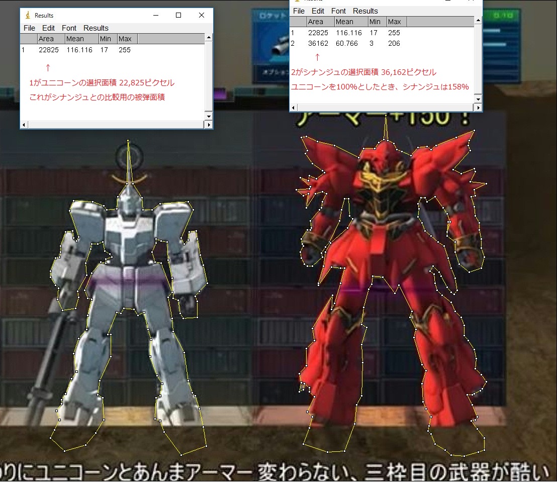 被弾面積158%だけど、APは105%でDGは117%しかない。これが運営の考えるバランスのとれた状態ということだろう。