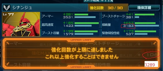 シナンジュの改造後の積載量が2,910になっています、正しくは3,289です修正お願いします。
