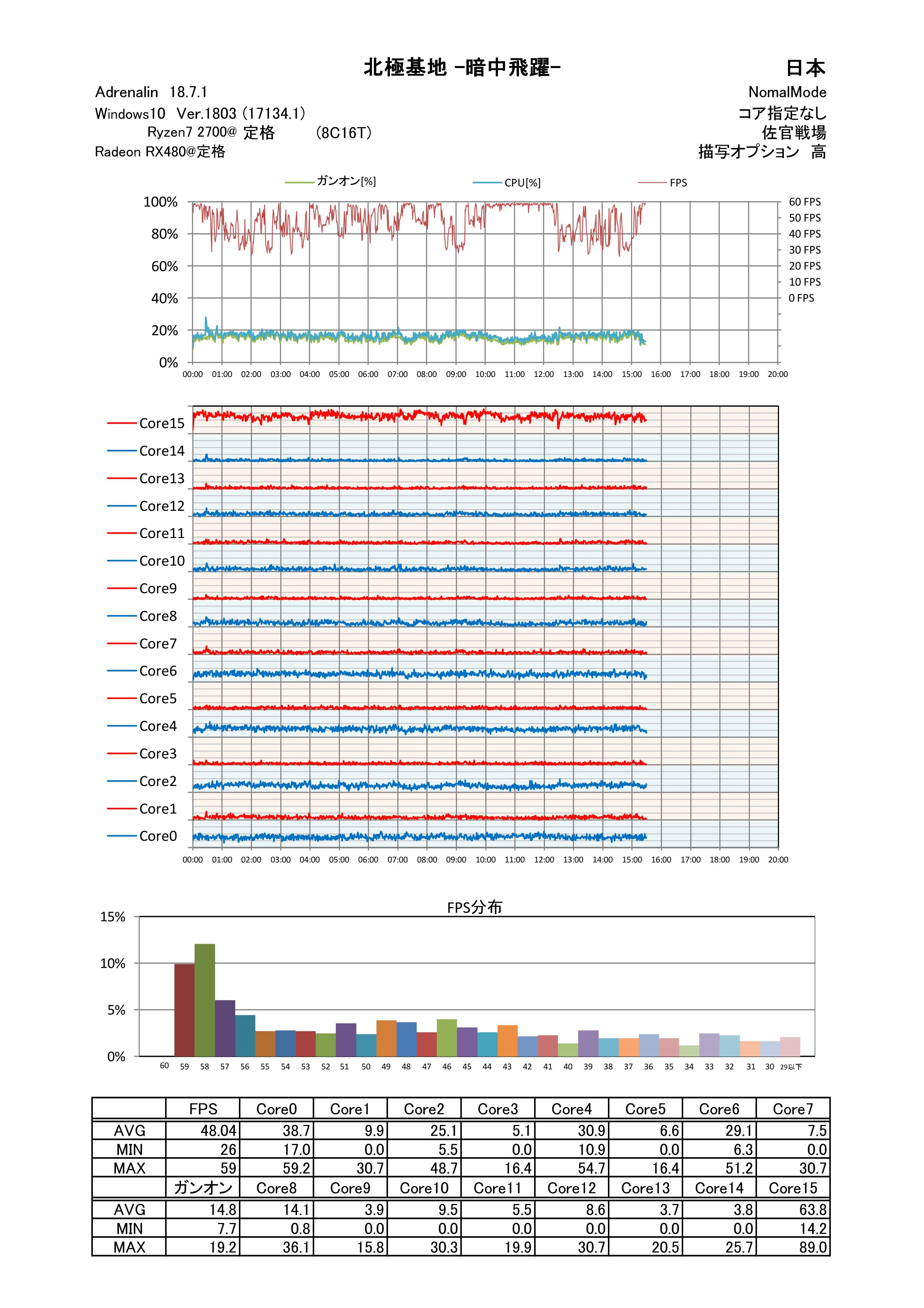 Ryzen7 2700Xで、使用コアの指定をしないとこうなる 北極BA マッスルタワー