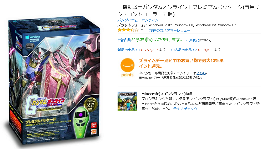 (´・ω・`)ガンオンの関連商品売ってるわよ。新品の価格に驚愕しなさい。