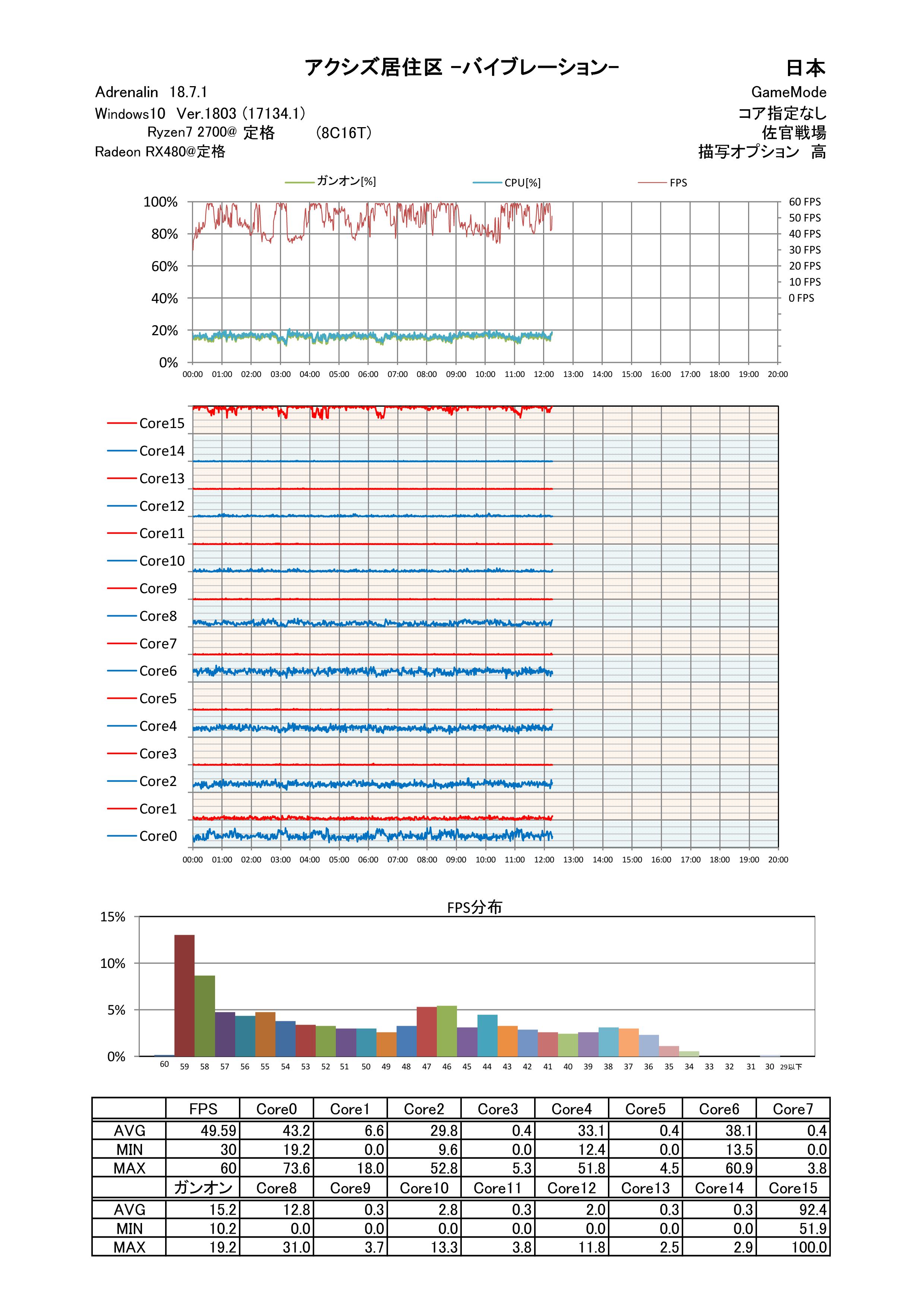 Ryzen2700X DDR4-3400 GameMode やっぱり最終コアをメインに使ってる。これはWindowsのバグなんだろうな。