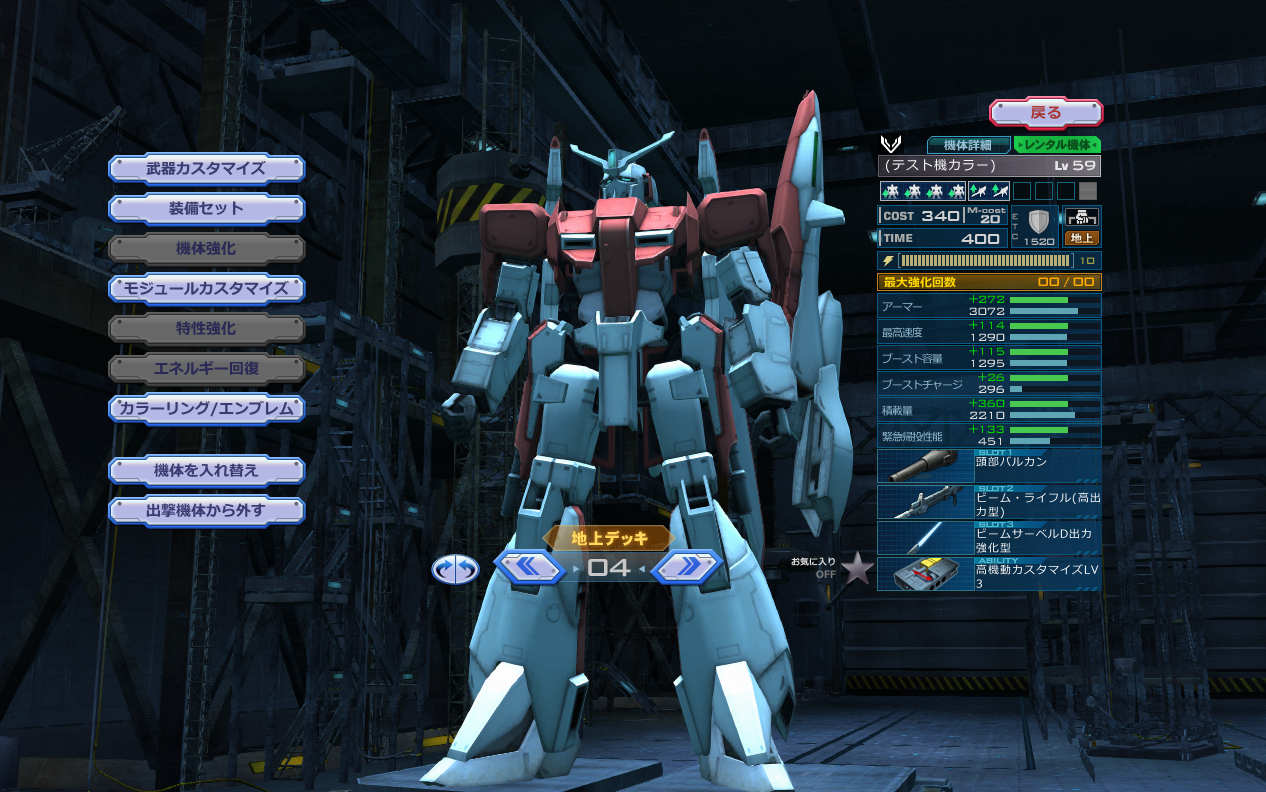 こっちにも貼っちゃうね。機体性能はこんな感じ。ちなみに話題になってるFA高出力の連射速度はユニコと同じくらいかな。体感だから確証はない