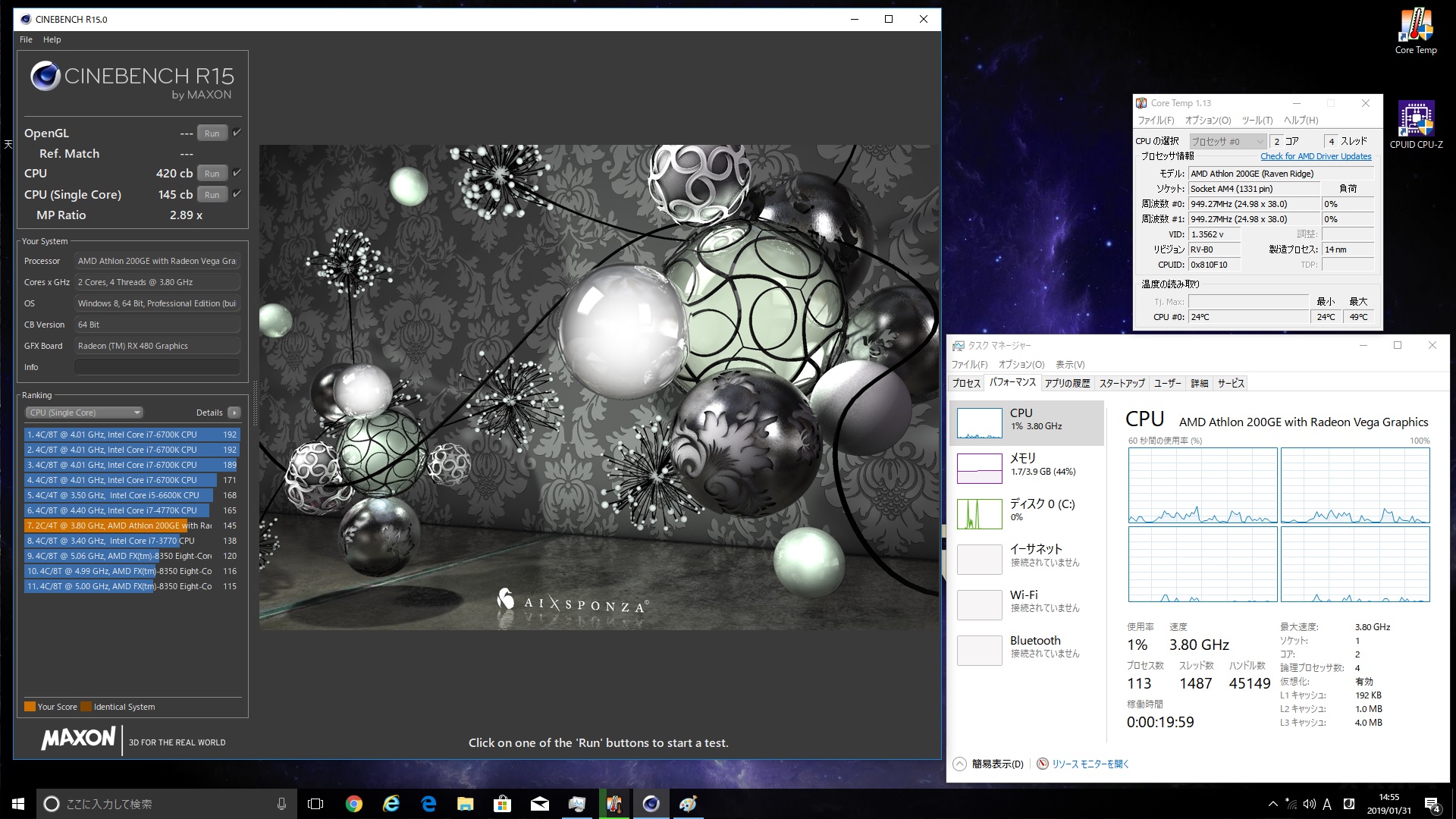 VCore1.38V 3.8GH DDR4-2666×1 最高温度49℃ まだ余裕ありそうだな