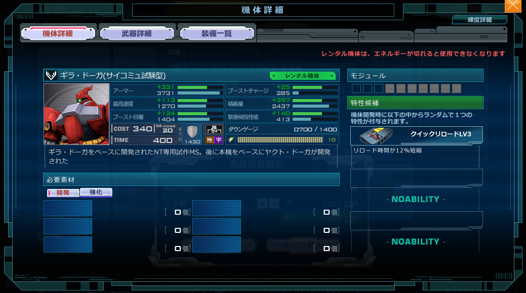 サイコミュドーガのレンタル性能(武装撮り忘れで戦闘行ってしまった 許して)
