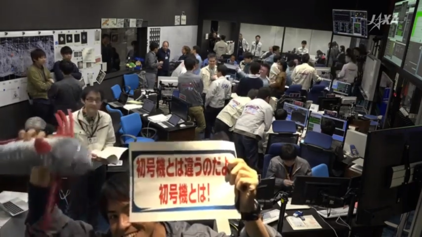 (´・ω・`)はやぶさ2タッチダウンのライブ映像の一コマ。jaxaにも当然ガンダムファンがいるのね。嬉しいわ。