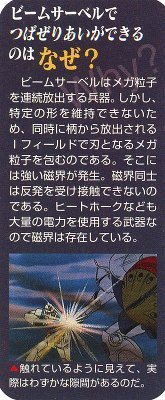 iフィールド自体がミノフスキー粒子を流用した技術だから、実際にはビーム同士をぶつけても突き抜けるよ。