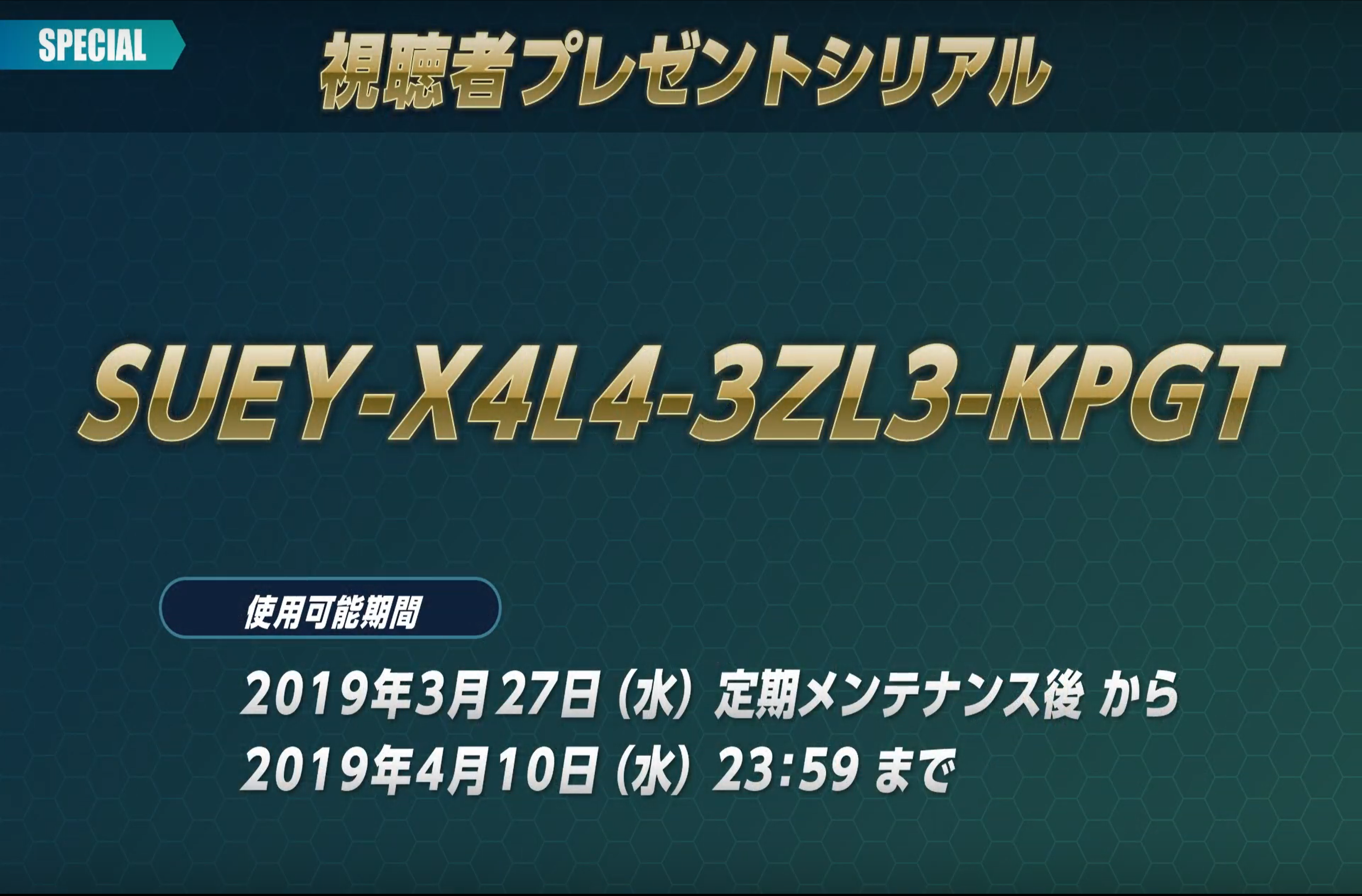 (´・ω・`)そろそろメンテ明けだからシリアルコード貼るわね。忘れずに入れるのよ。&color(Red){DX1枚だけど};